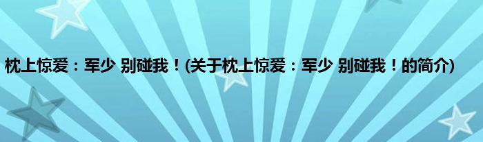 本文关于枕上惊爱:军少,别碰我!的简介就讲解完毕,希望对大家有所帮助。