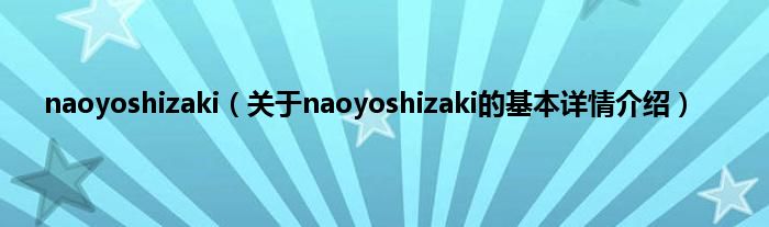 本文关于naoyoshizaki的基本详情介绍就讲解完毕,希望对大家有所帮助。