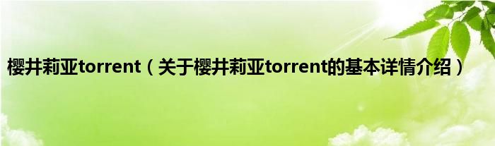 本文关于樱井莉亚torrent的基本详情介绍就讲解完毕,希望对大家有所帮助。