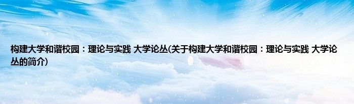 本文关于构建大学和谐校园:理论与实践 大学论丛的简介就讲解完毕,希望对大家有所帮助。
