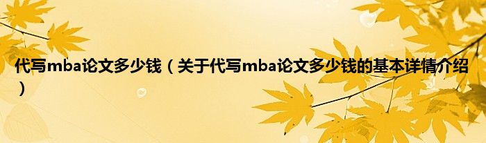 本文关于代写mba论文多少钱的基本详情介绍就讲解完毕,希望对大家有所帮助。