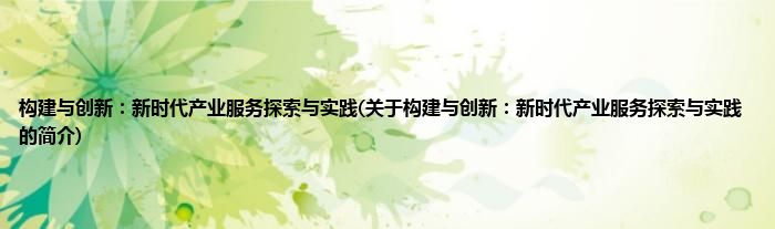 本文关于构建与创新:新时代产业服务探索与实践的简介就讲解完毕,希望对大家有所帮助。