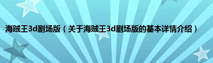 本文关于海贼王3d剧场版的基本详情介绍就讲解完毕,希望对大家有所帮助。