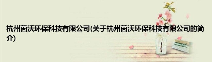 本文关于杭州茵沃环保科技有限公司的简介就讲解完毕,希望对大家有所帮助。