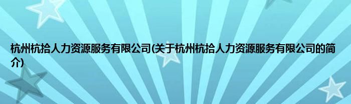 本文关于杭州杭拾人力资源服务有限公司的简介就讲解完毕,希望对大家有所帮助。