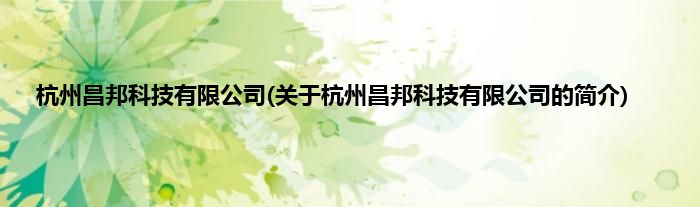 本文关于杭州昌邦科技有限公司的简介就讲解完毕,希望对大家有所帮助。