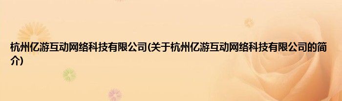 本文关于杭州亿游互动网络科技有限公司的简介就讲解完毕,希望对大家有所帮助。
