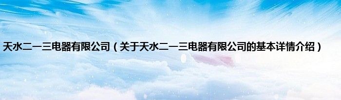 本文关于天水二一三电器有限公司的基本详情介绍就讲解完毕,希望对大家有所帮助。