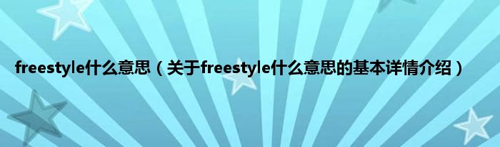 本文关于freestyle什么意思的基本详情介绍就讲解完毕,希望对大家有所帮助。