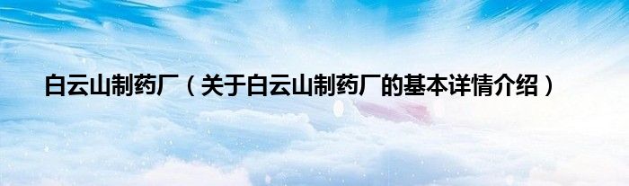 本文关于白云山制药厂的基本详情介绍就讲解完毕,希望对大家有所帮助。