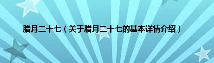 本文关于腊月二十七的基本详情介绍就讲解完毕,希望对大家有所帮助。