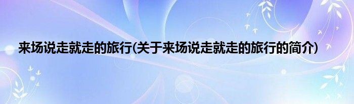 大家好,来场说走就走的旅行,关于来场说走就走的旅行的简介很多人还不知道,现在让我们一起来看看吧!