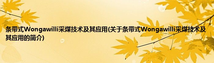 本文关于条带式Wongawilli采煤技术及其应用的简介就讲解完毕,希望对大家有所帮助。