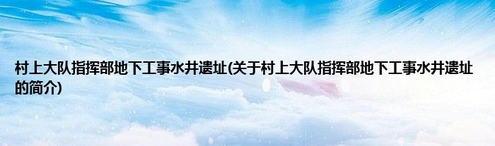 本文关于村上大队指挥部地下工事水井遗址的简介就讲解完毕,希望对大家有所帮助。