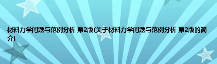 本文关于材料力学问题与范例分析 第2版的简介就讲解完毕,希望对大家有所帮助。