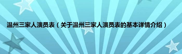 本文关于温州三家人演员表的基本详情介绍就讲解完毕,希望对大家有所帮助。