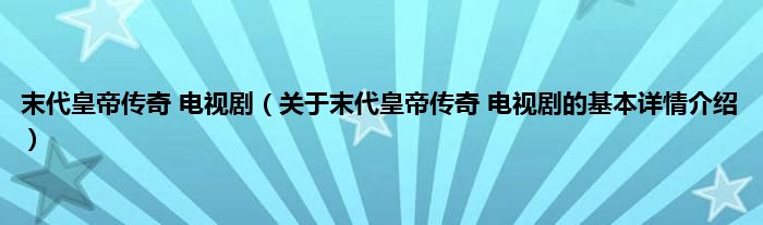 本文关于末代皇帝传奇 电视剧的基本详情介绍就讲解完毕,希望对大家有所帮助。