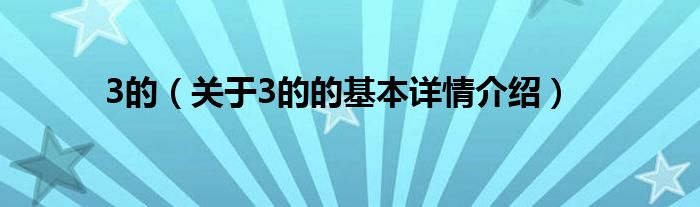 本文关于3的的基本详情介绍就讲解完毕,希望对大家有所帮助。