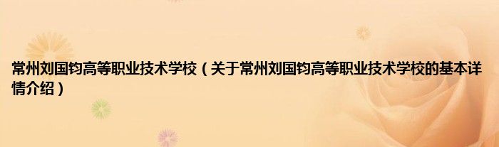 本文关于常州刘国钧高等职业技术学校的基本详情介绍就讲解完毕,希望对大家有所帮助。