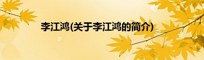本文关于李江鸿的简介就讲解完毕,希望对大家有所帮助。
