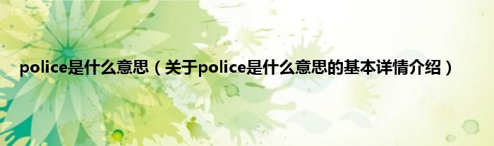 本文关于police是什么意思的基本详情介绍就讲解完毕,希望对大家有所帮助。