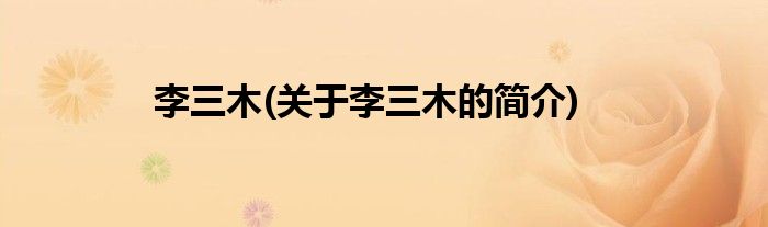 大家好,李三木,关于李三木的简介很多人还不知道,现在让我们一起来看看吧!