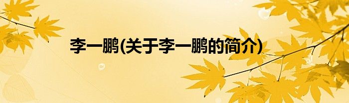 李一鹏(关于李一鹏的简介)
