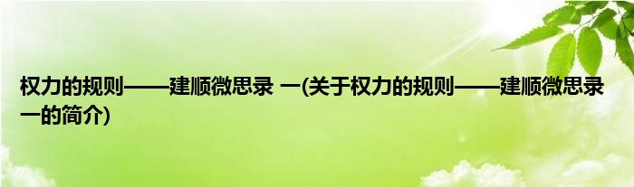 本文关于权力的规则——建顺微思录 一的简介就讲解完毕,希望对大家有所帮助。