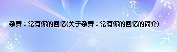 大家好,杂舞:常有你的回忆,关于杂舞:常有你的回忆的简介很多人还不知道,现在让我们一起来看看吧!
