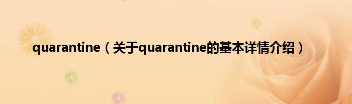本文关于quarantine的基本详情介绍就讲解完毕,希望对大家有所帮助。
