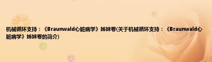 本文关于机械循环支持:《Braunwald心脏病学》姊妹卷的简介就讲解完毕,希望对大家有所帮助。