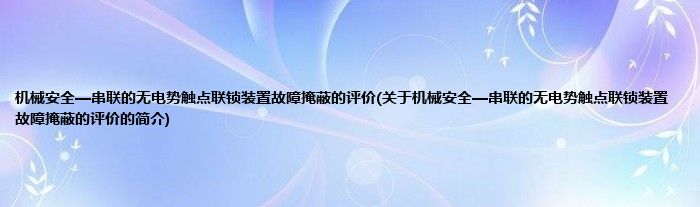 大家好,机械安全—串联的无电势触点联锁装置故障掩蔽的评价,关于机械安全—串联的无电势触点联锁装置故障掩蔽的评价的简介很多人还不知道,现在让我们一起来看看吧!