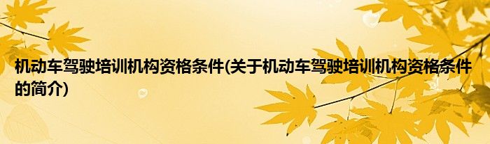 本文关于机动车驾驶培训机构资格条件的简介就讲解完毕,希望对大家有所帮助。