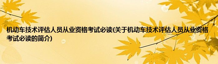 大家好,机动车技术评估人员从业资格考试必读,关于机动车技术评估人员从业资格考试必读的简介很多人还不知道,现在让我们一起来看看吧!