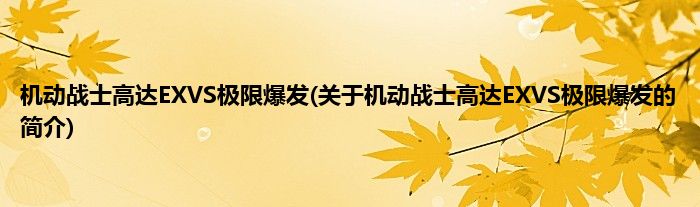 本文关于机动战士高达EXVS极限爆发的简介就讲解完毕,希望对大家有所帮助。