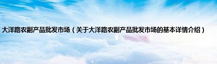 大家好我是小蝌蚪,大洋路农副产品批发市场,关于大洋路农副产品批发市场的基本详情介绍很多人还不知道,那么现在让我们一起来看看吧!
