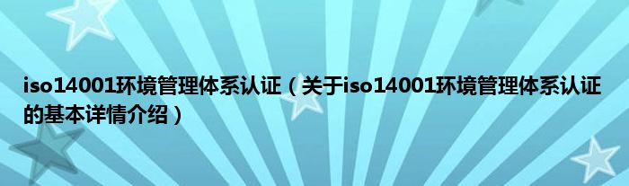 本文关于iso14001环境管理体系认证的基本详情介绍就讲解完毕,希望对大家有所帮助。