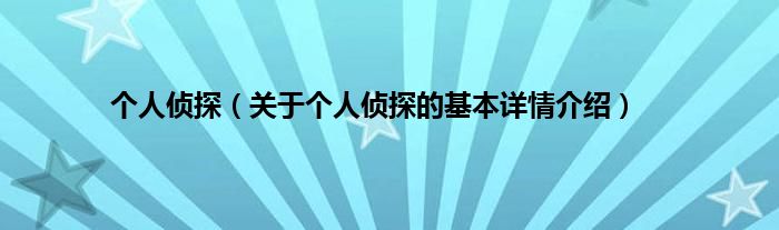 本文关于个人侦探的基本详情介绍就讲解完毕,希望对大家有所帮助。