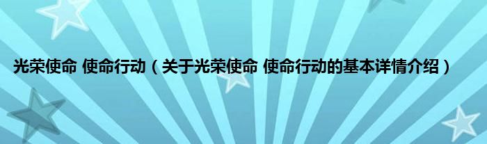 本文关于光荣使命 使命行动的基本详情介绍就讲解完毕,希望对大家有所帮助。