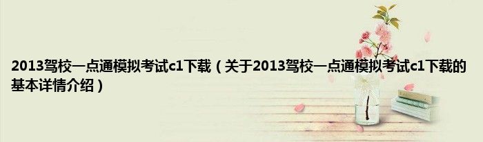 2013驾校一点通模拟考试c1下载(关于2013驾校一点通模拟考试c1下载的基本详情介绍)
