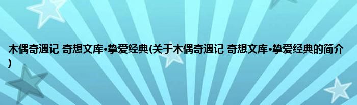 本文关于木偶奇遇记 奇想文库·挚爱经典的简介就讲解完毕,希望对大家有所帮助。