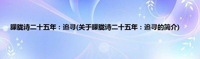 1、 《朦胧诗二十五年:追寻》是2002年上海社会科学院出版出版的图书。