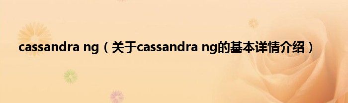 大家好我是小蝌蚪,cassandra ng,关于cassandra ng的基本详情介绍很多人还不知道,那么现在让我们一起来看看吧!