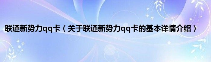 本文关于联通新势力qq卡的基本详情介绍就讲解完毕,希望对大家有所帮助。