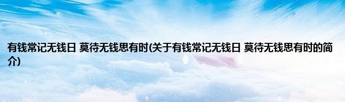 本文关于有钱常记无钱日,莫待无钱思有时的简介就讲解完毕,希望对大家有所帮助。