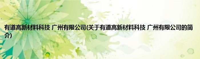 本文关于有道高新材料科技 广州有限公司的简介就讲解完毕,希望对大家有所帮助。