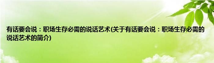 本文关于有话要会说:职场生存必需的说话艺术的简介就讲解完毕,希望对大家有所帮助。