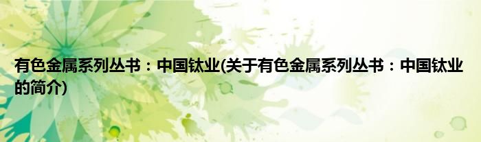 本文关于有色金属系列丛书:中国钛业的简介就讲解完毕,希望对大家有所帮助。