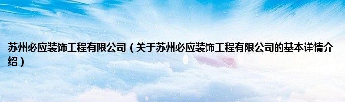 本文关于苏州必应装饰工程有限公司的基本详情介绍就讲解完毕,希望对大家有所帮助。