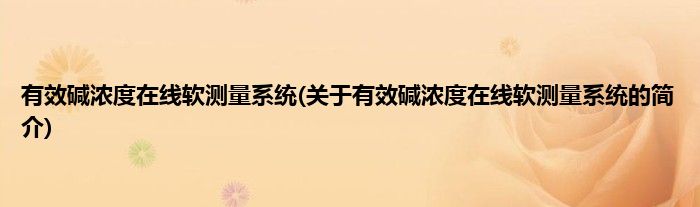 大家好,有效碱浓度在线软测量系统,关于有效碱浓度在线软测量系统的简介很多人还不知道,现在让我们一起来看看吧!